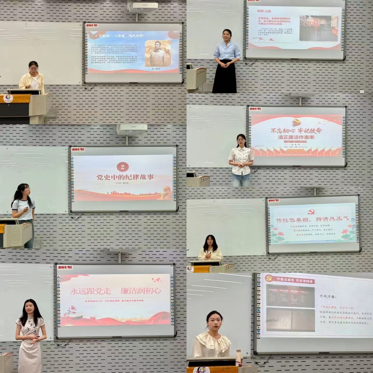 比赛现场气氛热烈,选手们围绕党史中的廉洁故事、先进人物以及廉洁自律的重要意义等方面,通过生动的讲解、丰富的案例和真挚的情感,为现场观众带来了一堂堂精彩的微党课。张荣润同学的《永远在路上》深刻剖析了自我革命的历史意义,她强调只有勇于自我革命,才能赢得历史主动,走好新的赶考之路;洪琦惠同学的《清风扬正气,廉洁自律行》则以铁道游击队精神为引,通过展厅里的红色故事,呼吁大家守住廉洁底色,传承自律精神;边姝艺同学的《廉洁之风,你我同行》则带领大家回顾了西柏坡时期的廉政制度建设,并分享了明朝名臣于谦的廉洁故事,引发在场师生的深思......他们用激情和热血展现了对廉洁文化的深刻理解和感悟,赢得了现场师生的阵阵掌声。
