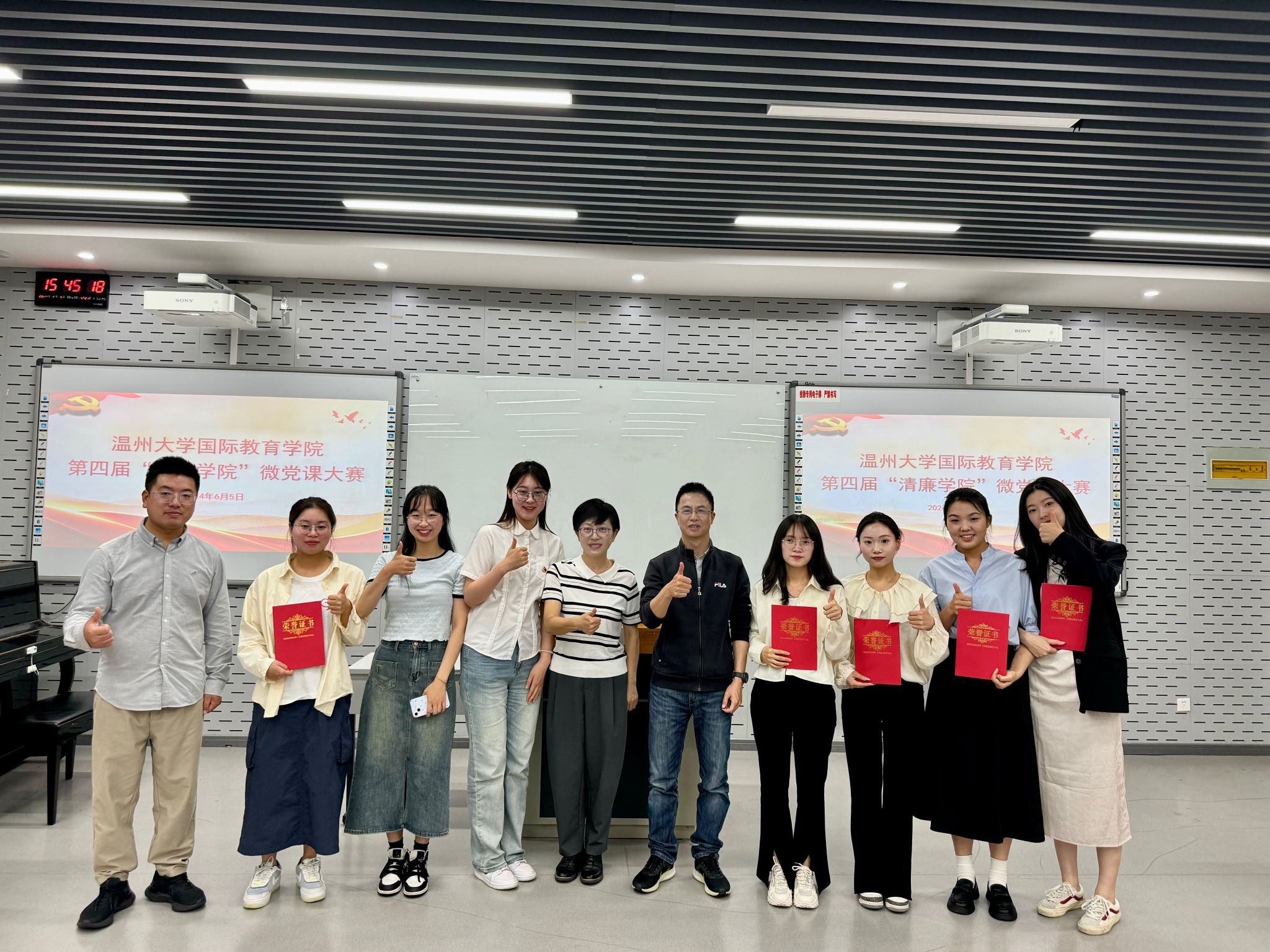 党总支书记林爱菊、副书记方建晓、党务秘书吴铨铨担任现场评委,7名汉语国际教育硕士研究生选手参加比赛。