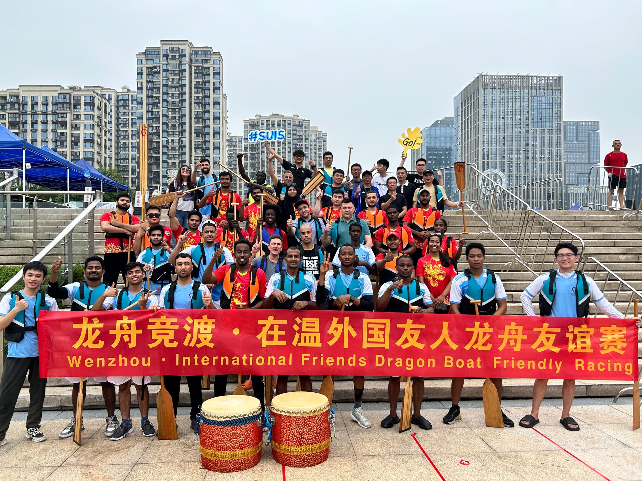 6月19日,2024年在温外国友人端午节活动——暨“龙舟竞渡·在温外国友人龙舟友谊赛”体验活动在温州龙舟运动中心成功举行。活动现场鼓乐喧天,搏桨跃浪,呐喊声、鼓掌声、喝彩声此起彼伏,众多留学生们热情参与,“划”进了精彩的龙舟文化,亲身感受着这传承千年的独特魅力。