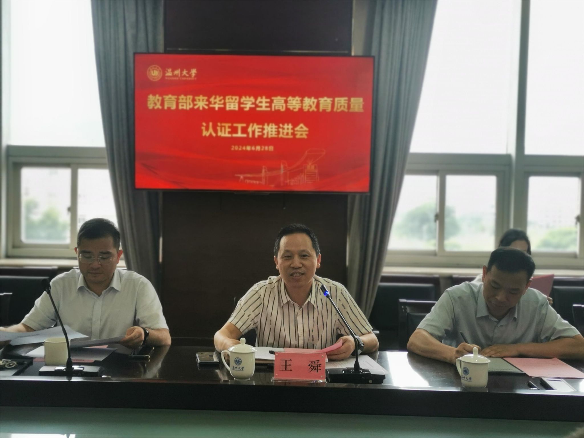 国际教育工作内涵式发展。他强调全校各单位要协同配合,规范工作,增强意识,优化机制,力争高质量通过此次来华留学生高等教育质量认证。