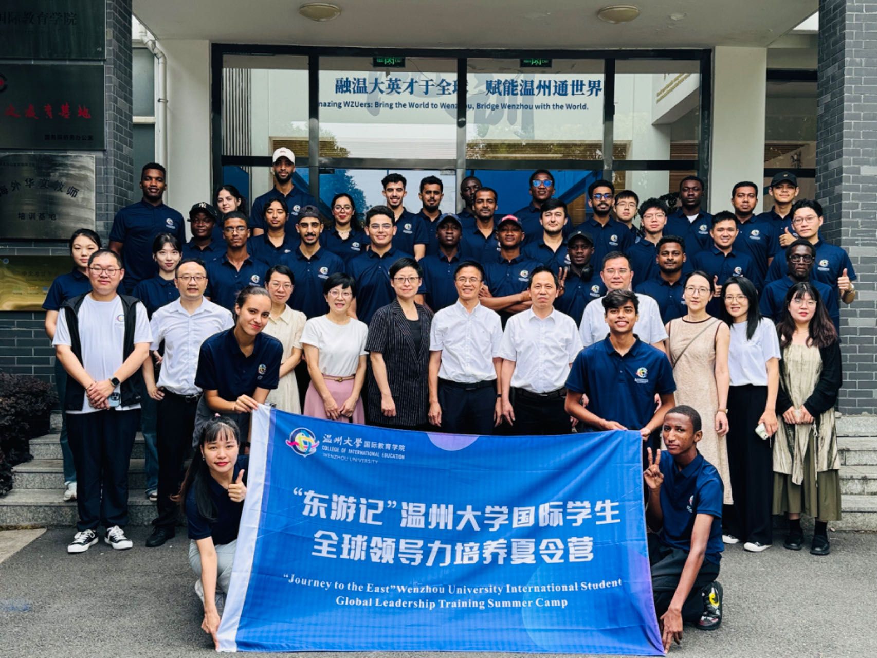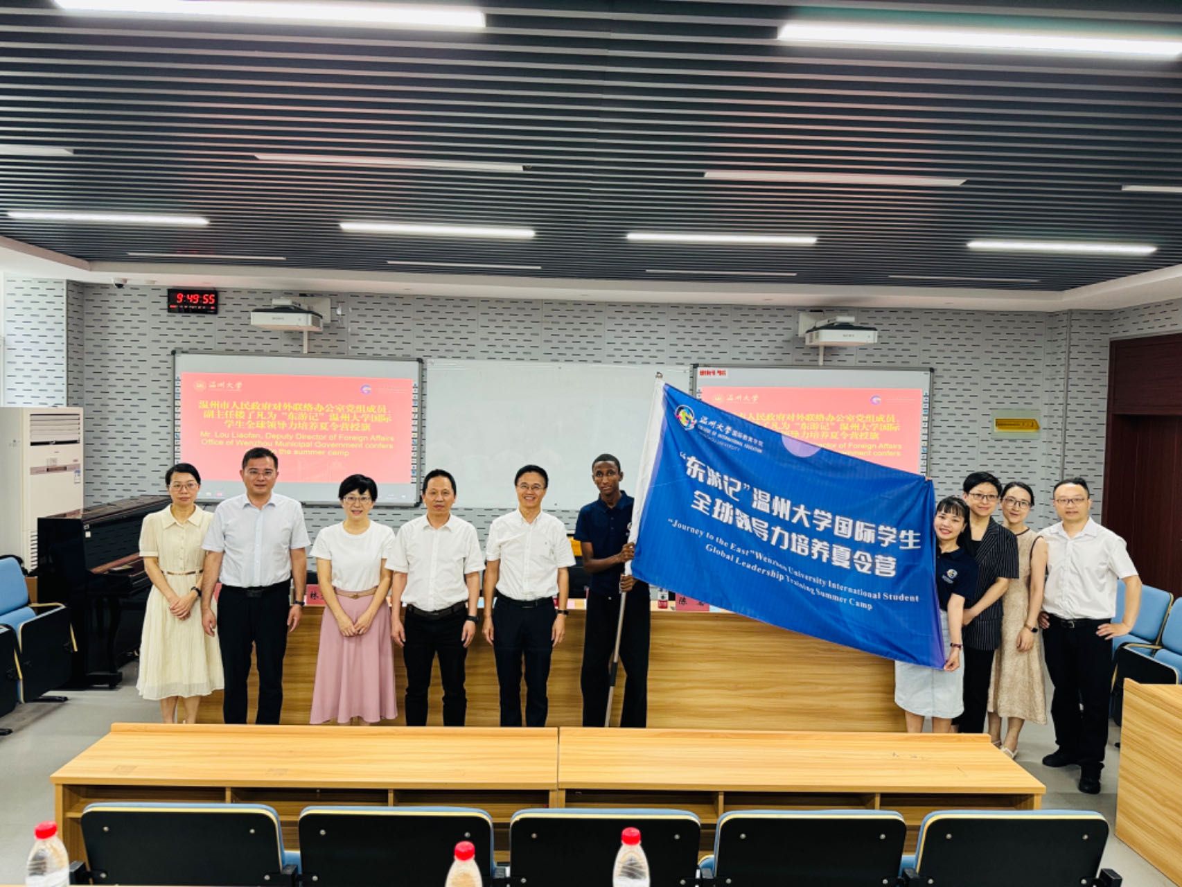 国际学生全球领导力培养夏令营开营仪式。温州市人民政府对外联络办公室党组成员、副主任楼了凡,校党委委员、副校长王舜,校国际处处长陈慧,校团委副书记徐瑶,555电影
