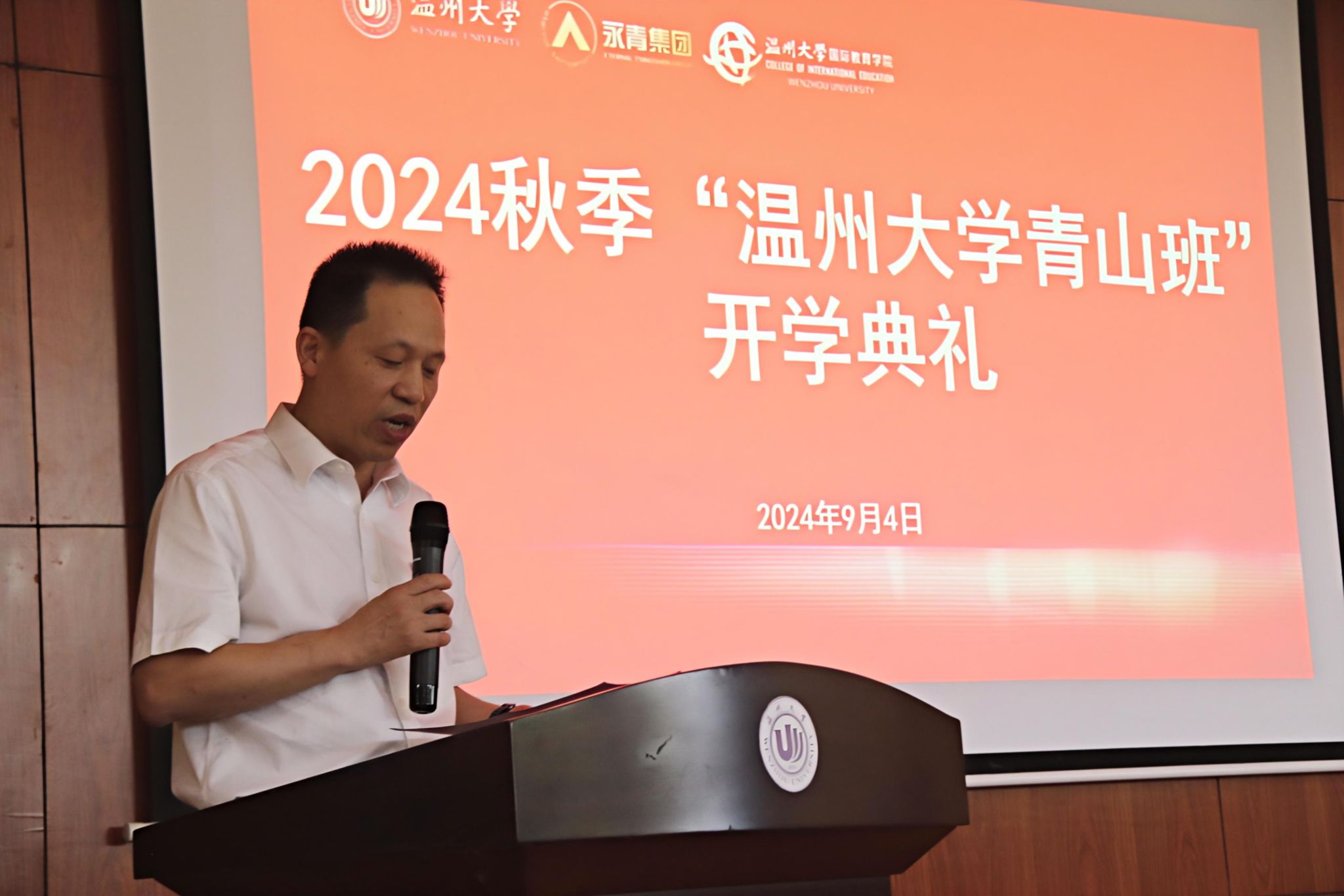 副校长王舜在开学典礼上致辞。他代表全校师生对远道而来的青山班新生表示热烈的欢迎和诚挚的问候。他介绍了学校近年来的办学成果,并对即将开启的留学温大之旅提出三点希望:一是希望同学们感知中华文化,做中国文明的传播者。二是希望同学们珍惜学习时光,做中文学习的探索者。三是希望同学们团结互助增进友谊,做中印尼友好往来的促进者。