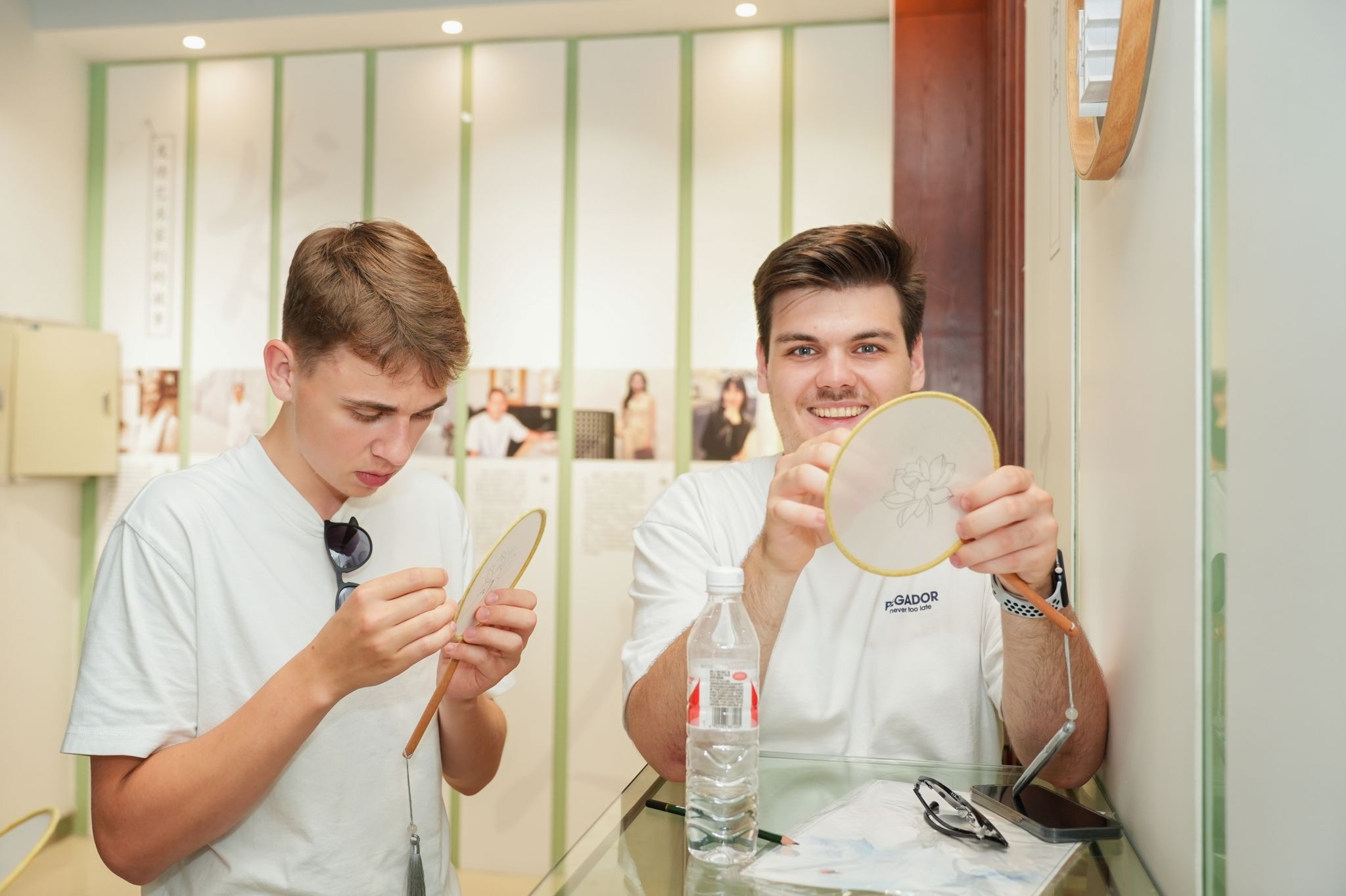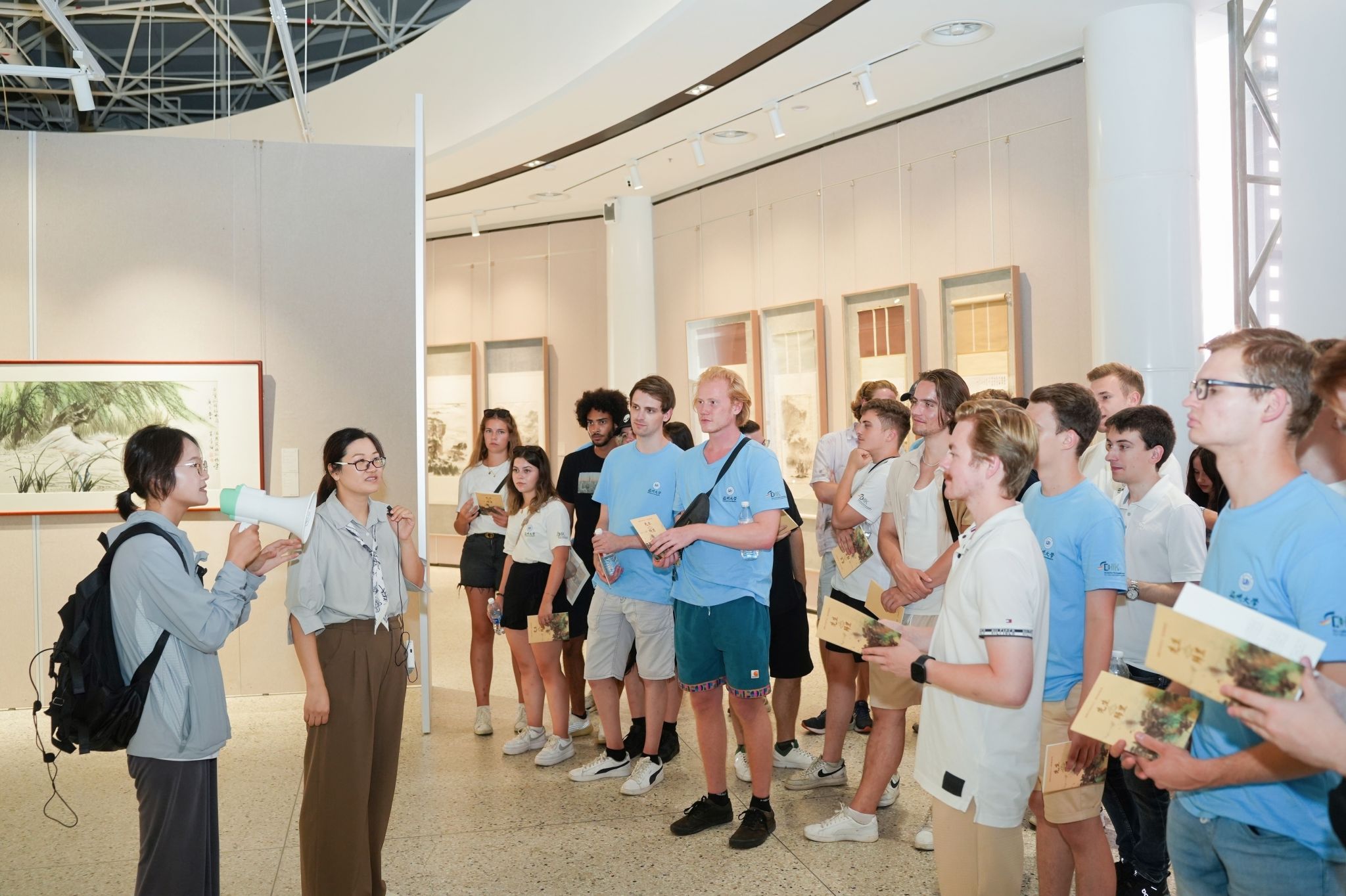 发绣馆。发绣这种独特的艺术形式让德国青年学生们大为惊叹,馆内陈列着一幅幅精致的发绣作品,发丝在艺术家的巧手下变成了栩栩如生的人物、山水画卷。学生们在参观过程中,认真聆听讲解,了解发绣的历史渊源和制作工艺。随后,他们亲自体验发绣,拿着纤细的发丝,小心翼翼地在绣布上尝试刺绣,尽管手法略显生疏,但他们都沉浸在这一传统艺术的独特魅力之中。