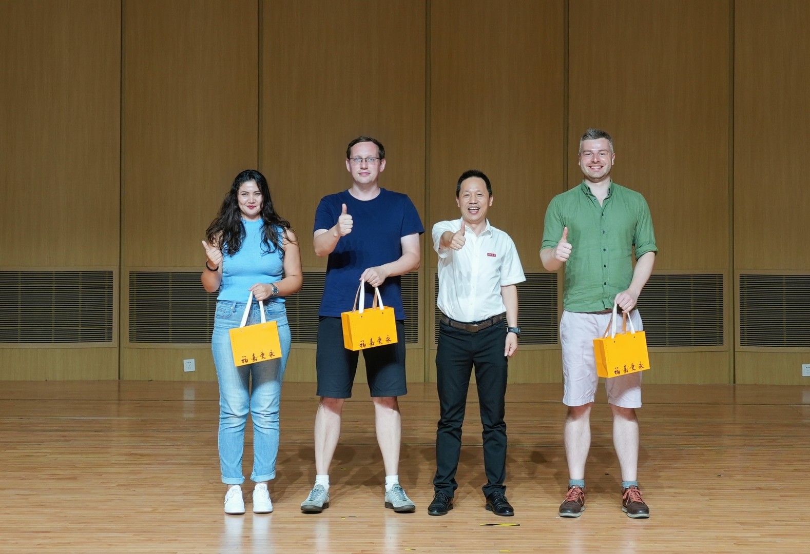 副校长王舜首先致辞,对德国青年学子们在暑期学校的精彩表现给予了高度评价,并对中德文化交流的广阔未来充满期待。温州市外事办副主任楼了凡随后发表讲话,强调了此次活动对促进两校友好关系的重要意义。德方院长Oliver也在致辞中表达了对温州的诚挚感谢以及对未来继续合作的美好展望。德国青年学生代表Knud Hano的讲话则充满了对这段难忘经历的深刻感慨和对中德友谊的珍视之情。随后,王舜副校长向本次暑期学校的带队老师赠送纪念品,以表达对他们辛勤付出的崇高敬意。