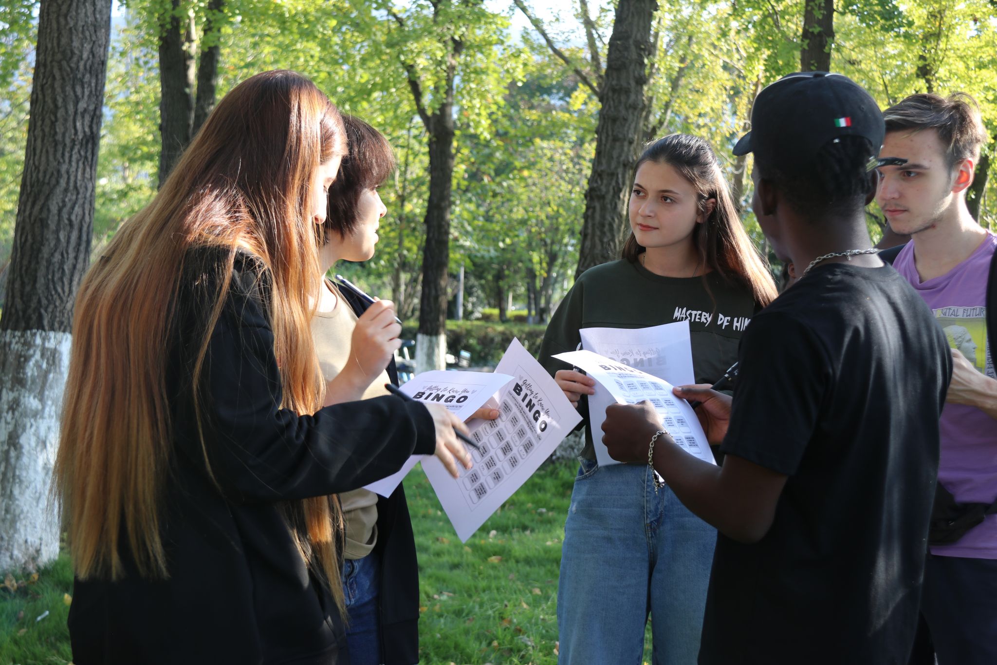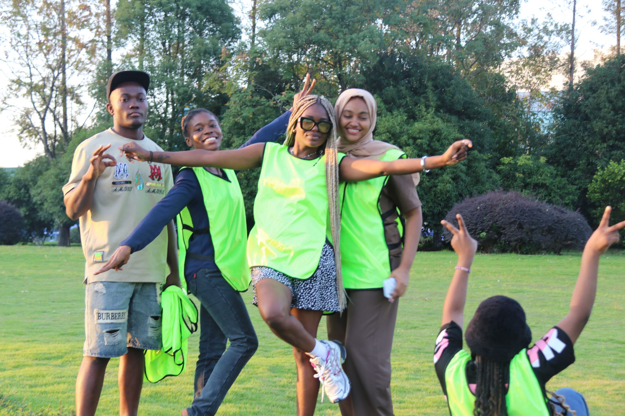 在接下来的活动中,三位医师精心设计了一系列有趣的团队游戏和互动环节。“Bingo”游戏环节,大家根据“getting to know you”问卷内容去寻找符合“喜欢跳舞的”“同月生日的”等特征的同学并让他们在上面签名,让同学们迅速了解对方并拉近了彼此的距离;“Two-Legged Race”游戏环节,同学们两两结伴,绑着腿向前冲刺,虽然过程中不乏踉跄和摔倒,但大家相互扶持、共同前进,逐渐培养起了默契和信任;还有精彩的“Capture the Flag: Campus Edition”环节,同学们分成几个小组,在草坪上展开了激烈的“飞盘大战”,飞盘在空中快速穿梭,同学们奔跑、跳跃、躲避,尽情展现着自己的活力和敏捷,不仅在运动中释放了压力,还培养了他们的竞争意识和团队协作能力。