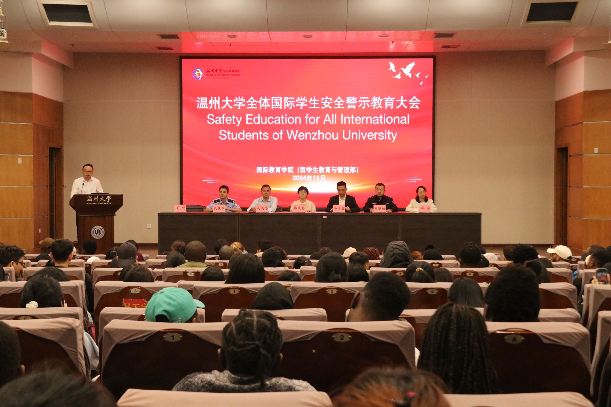 全体国际学生安全警示教育大会在北校区信息楼报告厅召开。温州市交警四大队八中队副中队长邱强楠、茶山高教园区派出所警长史铁军、555电影