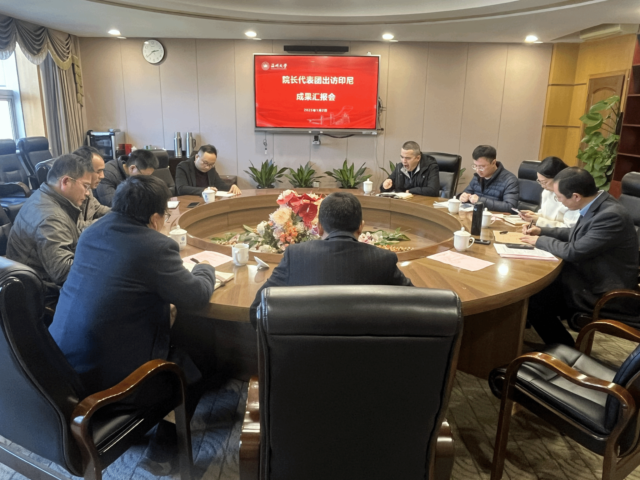 院长代表团出访印尼成果汇报会在南校行政楼918会议室召开。副校长王舜、国际交流与合作处副处长熊勇、院长代表团成员以及555电影