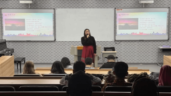201报告厅拉开帷幕。本次比赛有11支留学生队伍参赛,涵盖全校不同层次的留学生,比赛旨在以诵读和讲解的形式展现中华诗词的独特魅力,促进中外文化交流。
