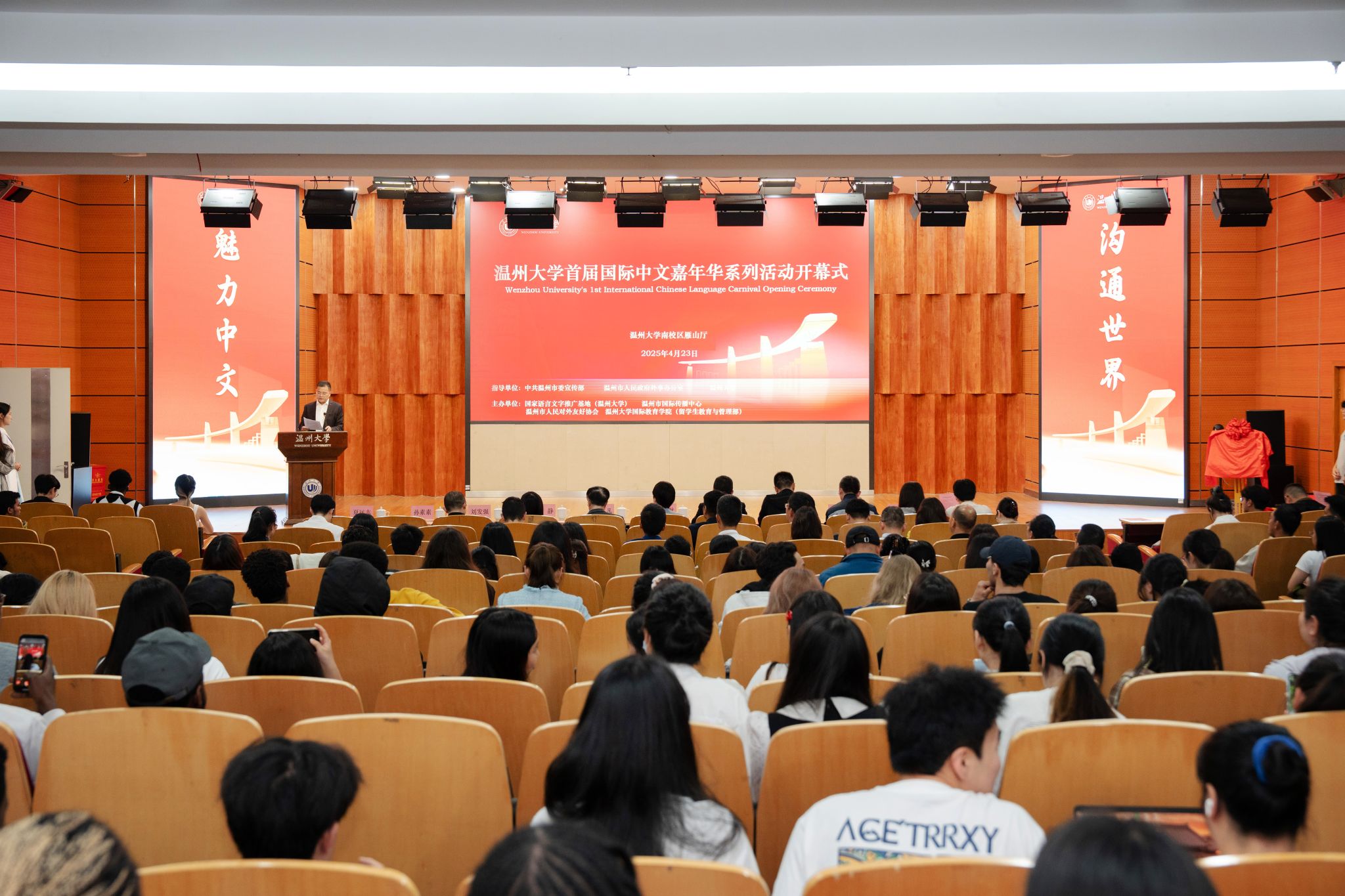 相关部门及学院负责人出席开幕式,与来自世界各地的留学生、师生代表及各界嘉宾汇聚一堂,以语言为媒、以文化为桥,开启了一场跨越国界、共话文明的交流盛会。