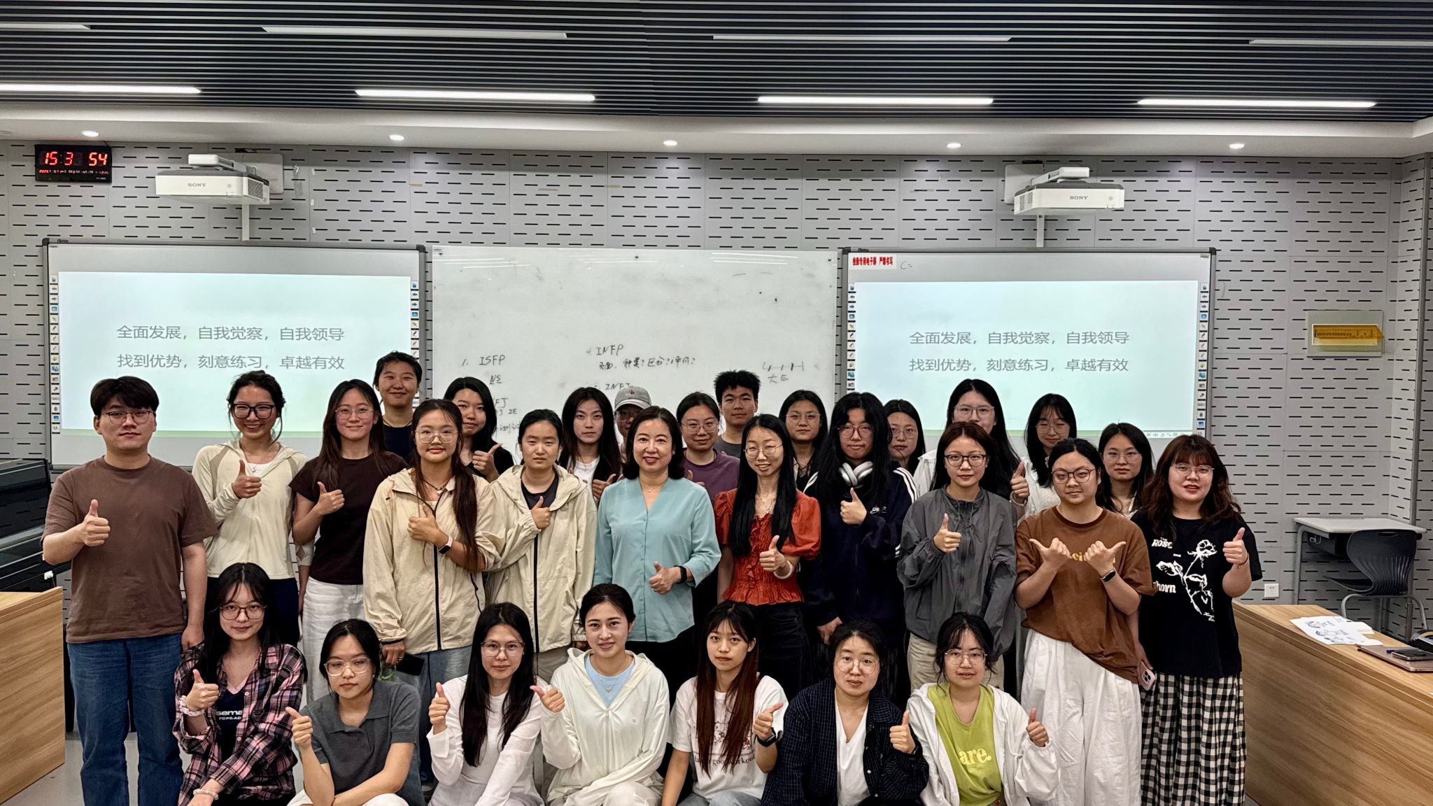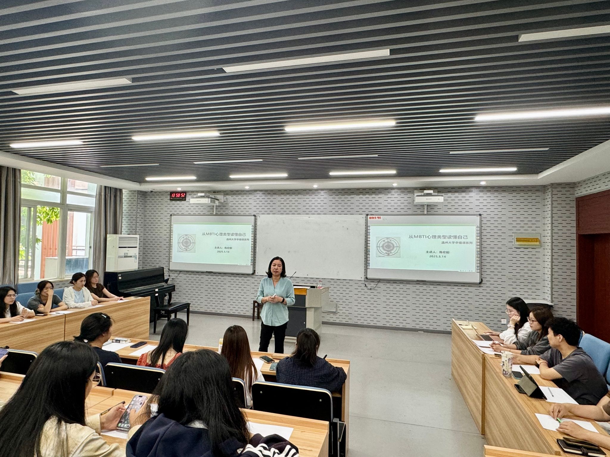 讲座还设置了丰富的互动环节,引导学生在交流中深化自我认知。一位自测为 ISTJ(检查员型)的研究生分享道:“我的优势功能是内倾感觉(Si)和外倾思维(Te),这解释了为什么我擅长按计划完成科研任务,但在应对突发社交场合时会感到压力。通过今天的学习,我意识到可以通过刻意练习外倾情感(Fe)来提升沟通能力。”