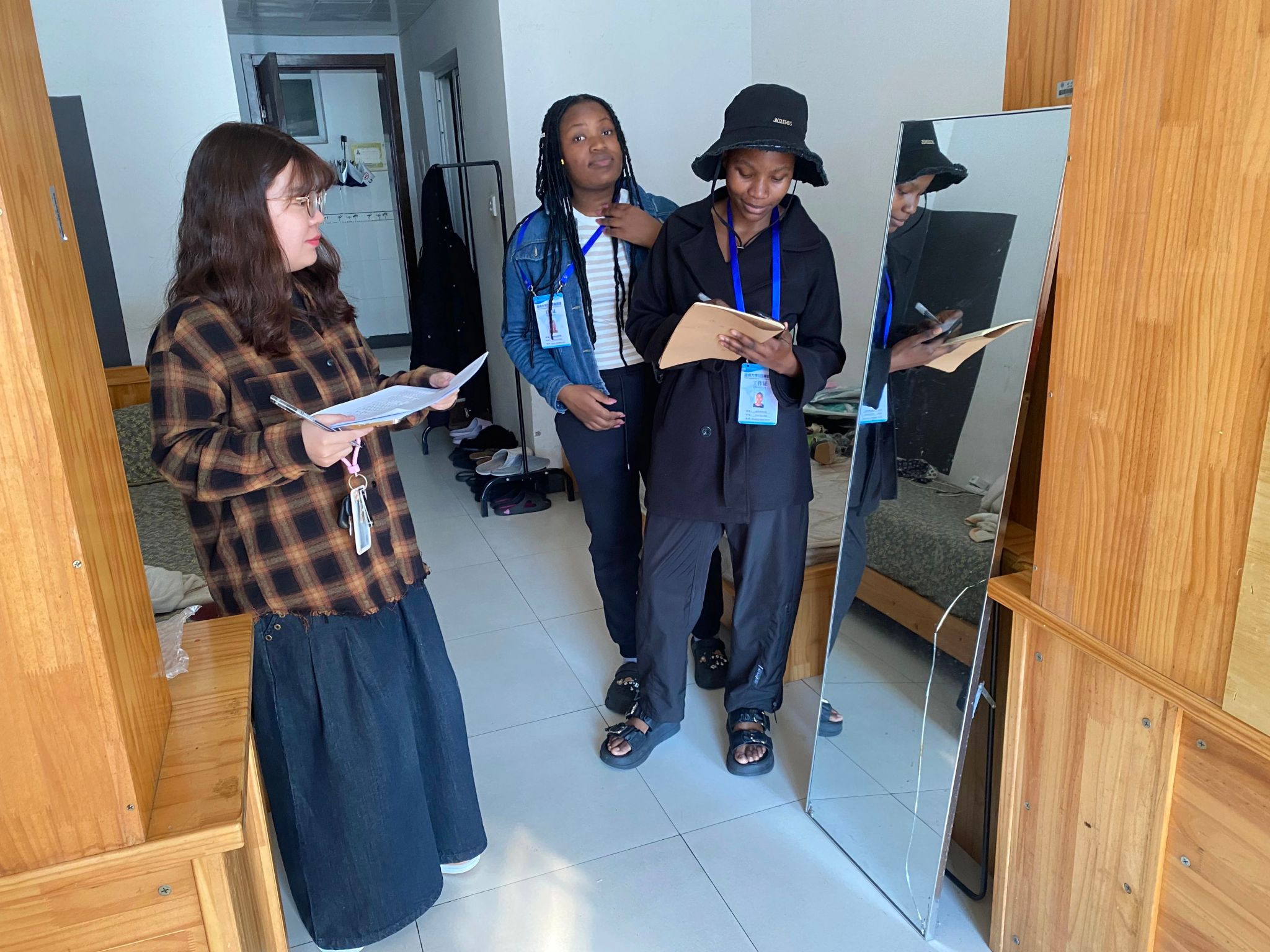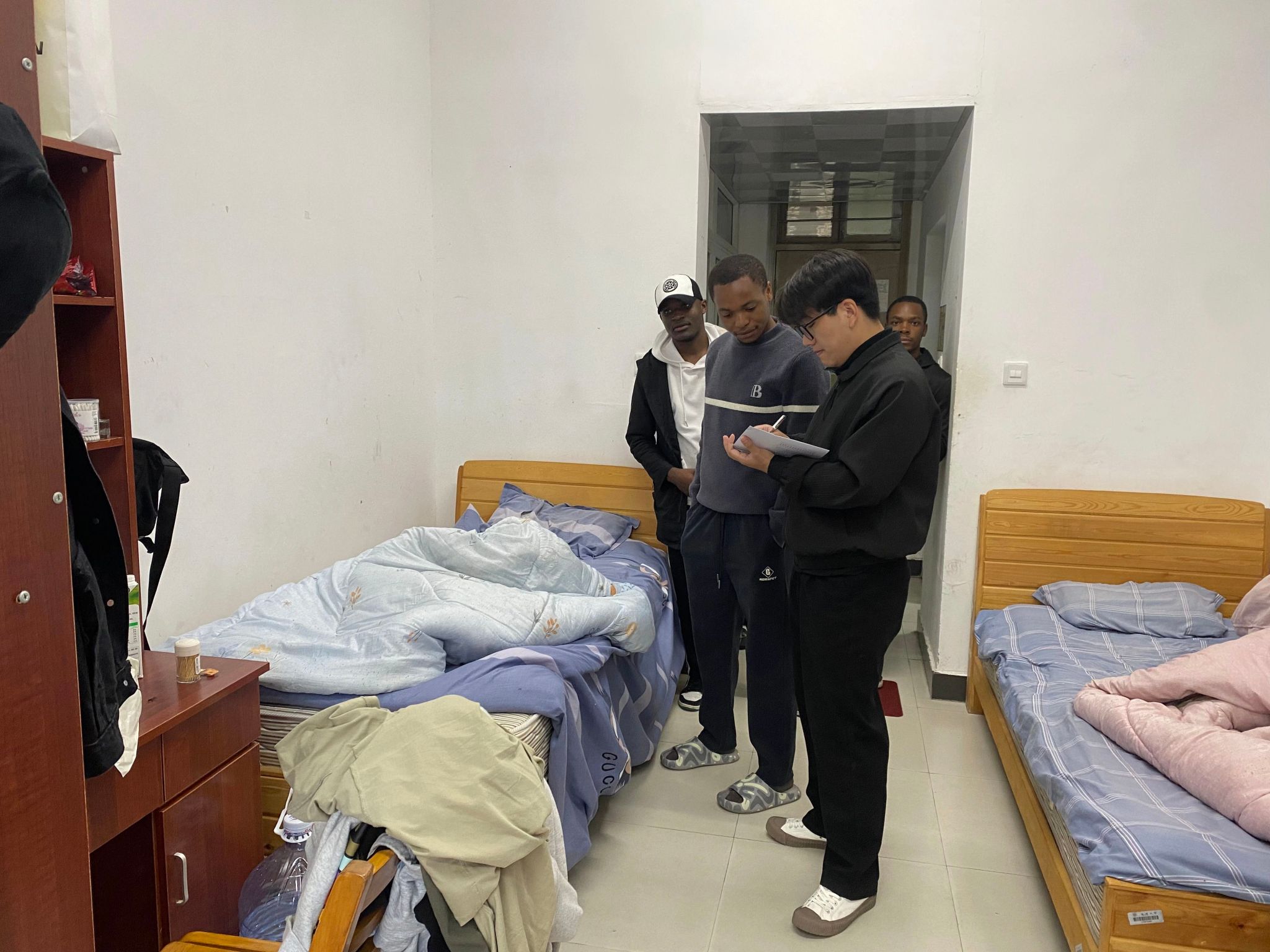 学工办全体老师及国际学生公寓助理们共同组织开展学生公寓安全卫生大检查。