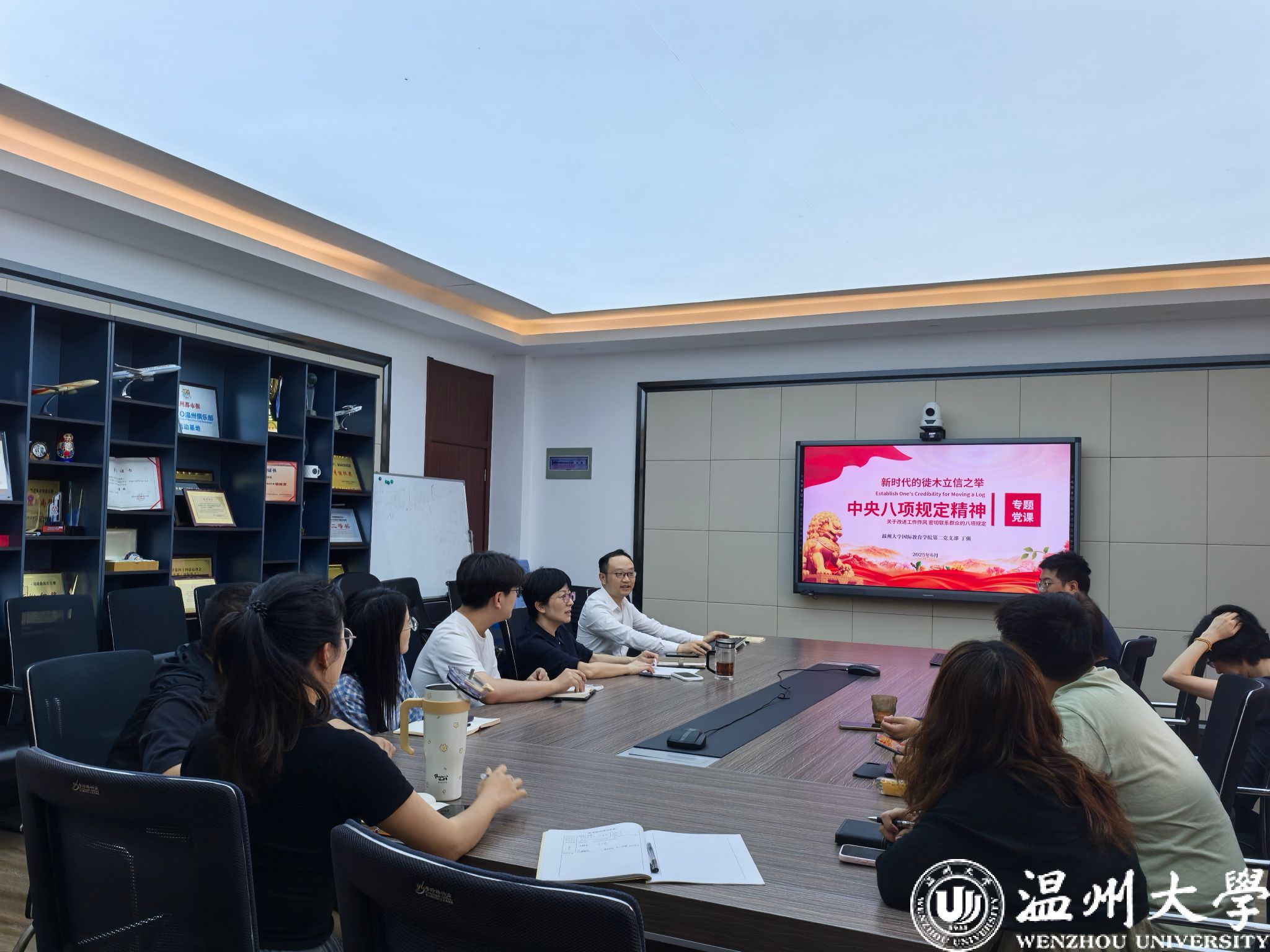 会议最后,林爱菊书记作总结讲话。她指出,本次学习内容系统全面,既有中央层面的纪律要求,又有学校具体的制度规范,具有很强的针对性和指导性。她强调,全体党员要深刻认识全面从严治党永远在路上的重要意义,将学习成果转化为干事创业的实际行动:一是要常怀敬畏之心,严守纪律红线,做到知敬畏、存戒惧、守底线;二是要发扬艰苦奋斗精神,在教育教学、管理服务中践行勤俭节约;三是要用好"小微权力清单",规范工作流程,防范廉政风险。她要求支部全体党员以更高标准严格要求自己,在学院国际化办学进程中当先锋、作表率,共同营造风清气正的育人环境。