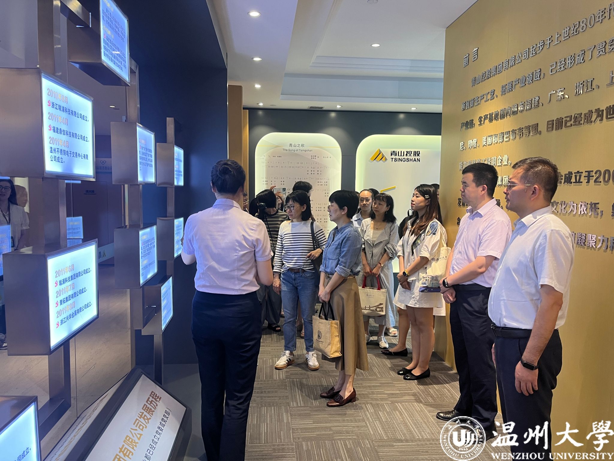教师党员先后参观了青山控股集团党建厅、青山慈善基金会展厅及青山学苑。
