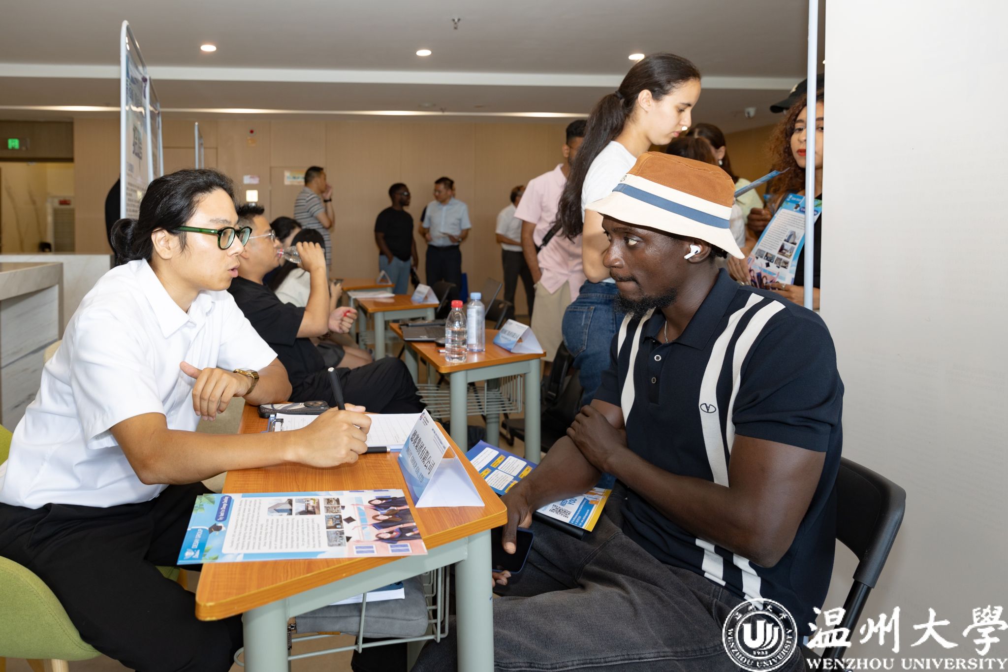 与瓯海区商务局联合主办,温州市瓯海区委组织部(人才办)、温州市瓯海区人社局、温州市瓯海区经信局、温州市海外传播中心、温州市鹿城区公安分局出入境管理大队协办,吸引了来自津巴布韦、俄罗斯、泰国等30多个国家的100余名国际学生参加,德赛、嘉伟、东田、蔚蓝、宝通等十余家行业龙头企业参展,政企校三方齐聚一堂,为国际人才留温发展搭建优质平台,共绘产才融合新图景。