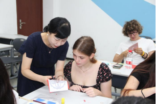 作为非物质文化遗产的剪纸艺术同样充满趣味。一把剪刀、一张红纸,成为留学生们探索中国民间艺术的工具,在太平钿剪纸代表性传承人姜云老师的指导下,一幅“大吉大利”的团花就变成了留学生手中的最佳作品。姜老师说,剪纸技艺已经不仅仅是技艺这么简单,更是连接人与人之间的情感纽带、桥梁,是传达美好心愿祝福的媒介。