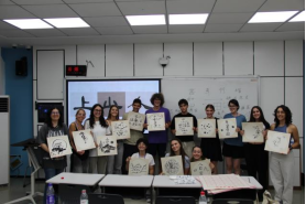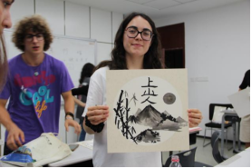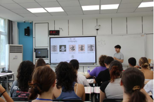 “横画蚕头燕尾,捺画一波三折。”在书法课上,留学生们握着毛笔的手从最初的颤抖,到渐渐找到门道。书法老师手把手纠正留学生的握笔姿势,“笔尖要稳,起笔要藏锋,收笔要有燕子尾巴一样的弧度。”曹老师边讲解边示范。当墨迹在宣纸上晕开,勾勒出古朴庄重的“上,山,人”三个字,隶书的端庄厚重与线条的美感瞬间呈现。同学们深有感触地说:“原来汉字不只是交流的符号,每一笔都像一幅小画,藏着中国人对美的理解。”