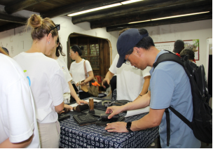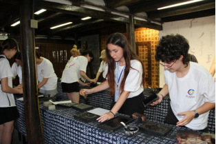 瑞安市东源村的木活字印刷术距今已有八百多年的历史,被称为中国印刷术的活化石。在印刷展示馆,跟随着讲解员的讲解演示,蘸墨、铺纸、拓印,揭纸,学生们动手体验了雕版印刷的全过程。在木活字研学馆,非遗传承人现场雕刻,帮所有留学生挑选出他们的汉语姓名,结合一幅幅雕版图案,一个个带有各自姓名的祝福帖就被印刷出来了。“原来在古腾堡印刷术之前,中国早就有了这样精密的印刷技术!”本次研学活动,让留学生们亲手触摸到中国古代工匠的智慧,更理解了“文明因交流而互鉴”的深意。