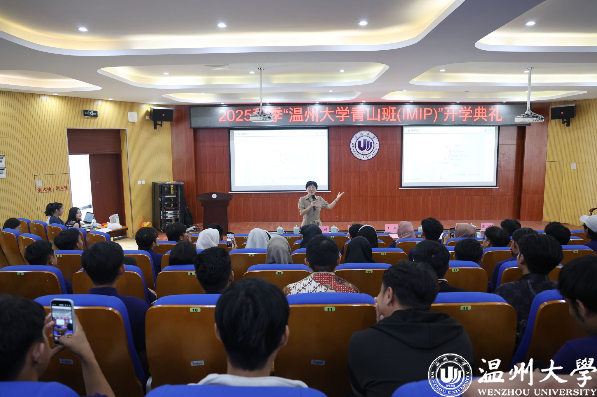 典礼尾声,林爱菊书记为全体学员讲授《开学第一课》。她从中印尼传统友谊谈起,生动介绍了浙江省及温州市的经济、地理与人文风貌,回顾了555电影
