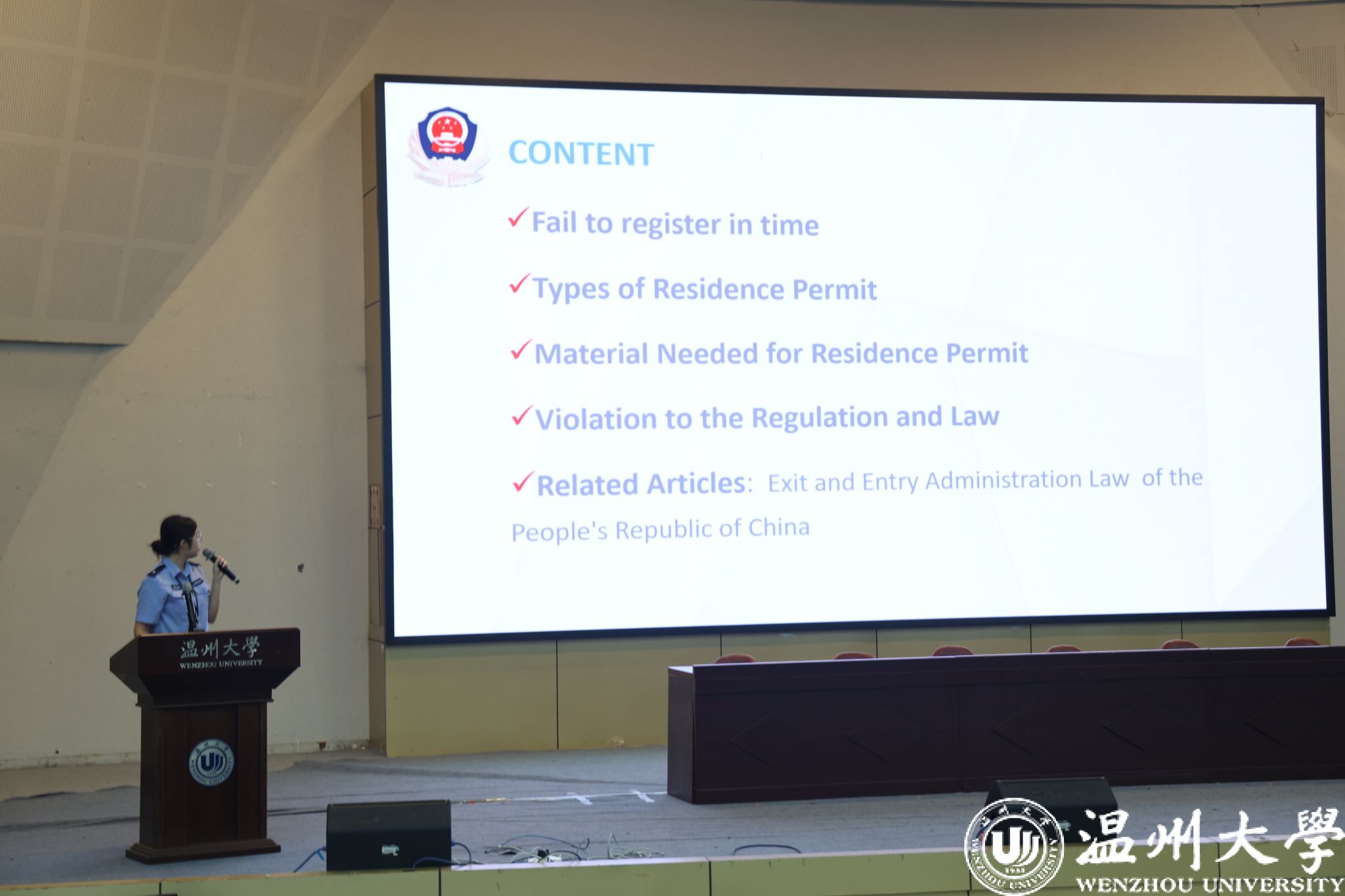 学工办程玲老师共同为学生们提供了指导。林叶彤警官从出入境管理角度,详细讲解了签证办理的各项规定和出入境相关法律法规。程玲老师则立足学校管理服务实际,详尽解读了留学生学习签证的办理流程、所需材料及关键时间节点,为新生居留许可办理指明了方向。