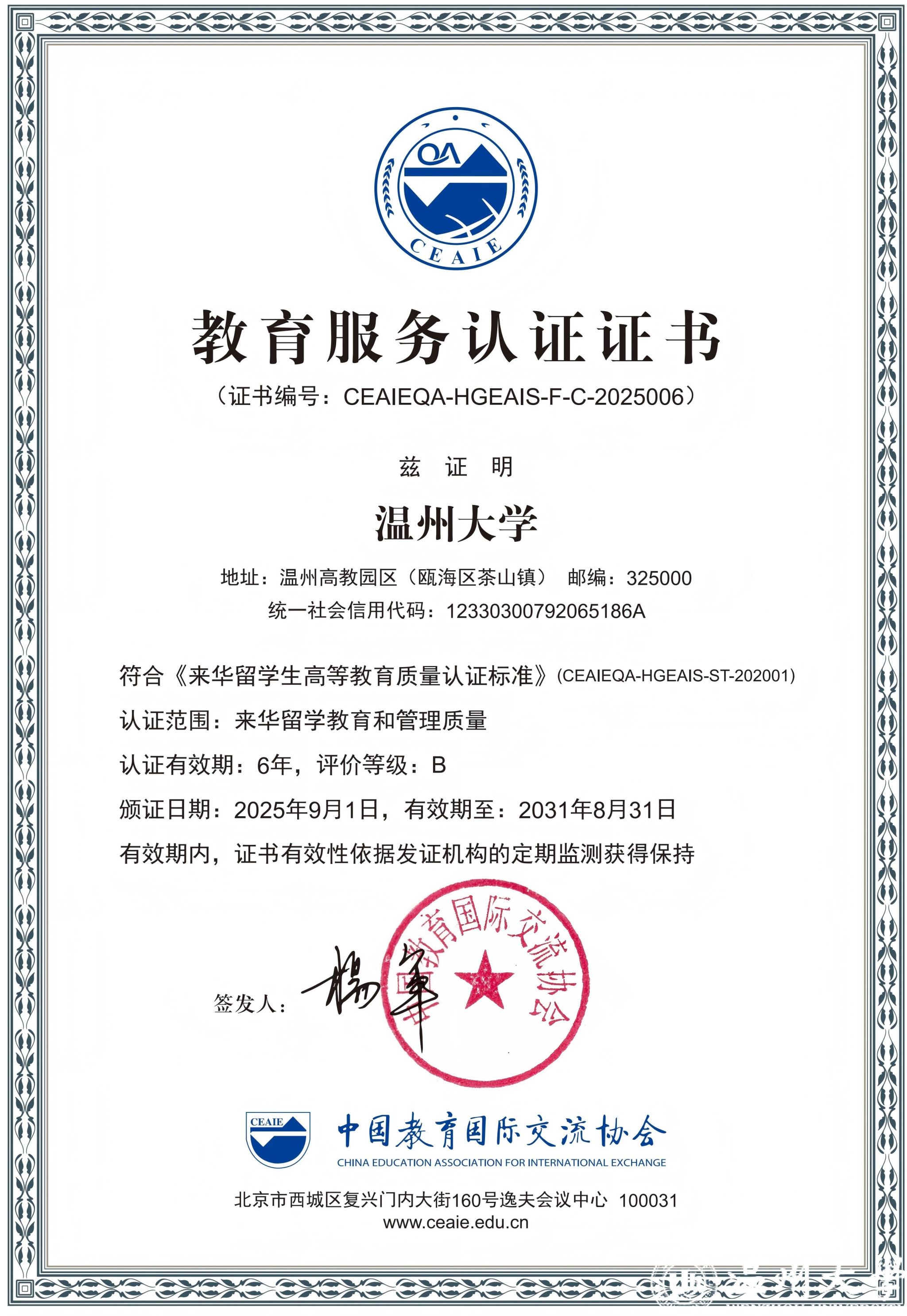来华留学教育迈入了新的发展阶段。学校将紧密围绕国家教育对外开放战略,依托自身办学特色与学科优势,秉持“以评促改、以评促建、以评促管”的理念,结合认证专家提出的整改意见,持续优化国际学生的招生、培养、管理及服务机制,切实提升来华留学教育质量与效能,不断擦亮“留学温大”品牌。在教育对外开放和教育强国建设的进程中,学校将积极贡献温大智慧与力量。