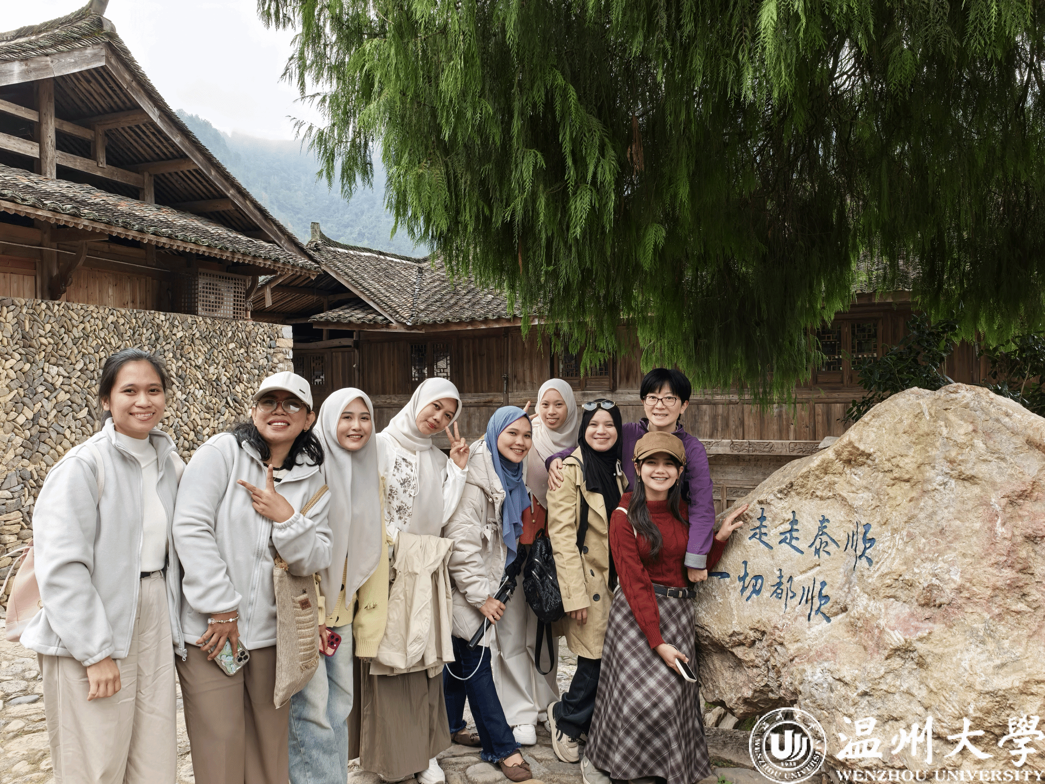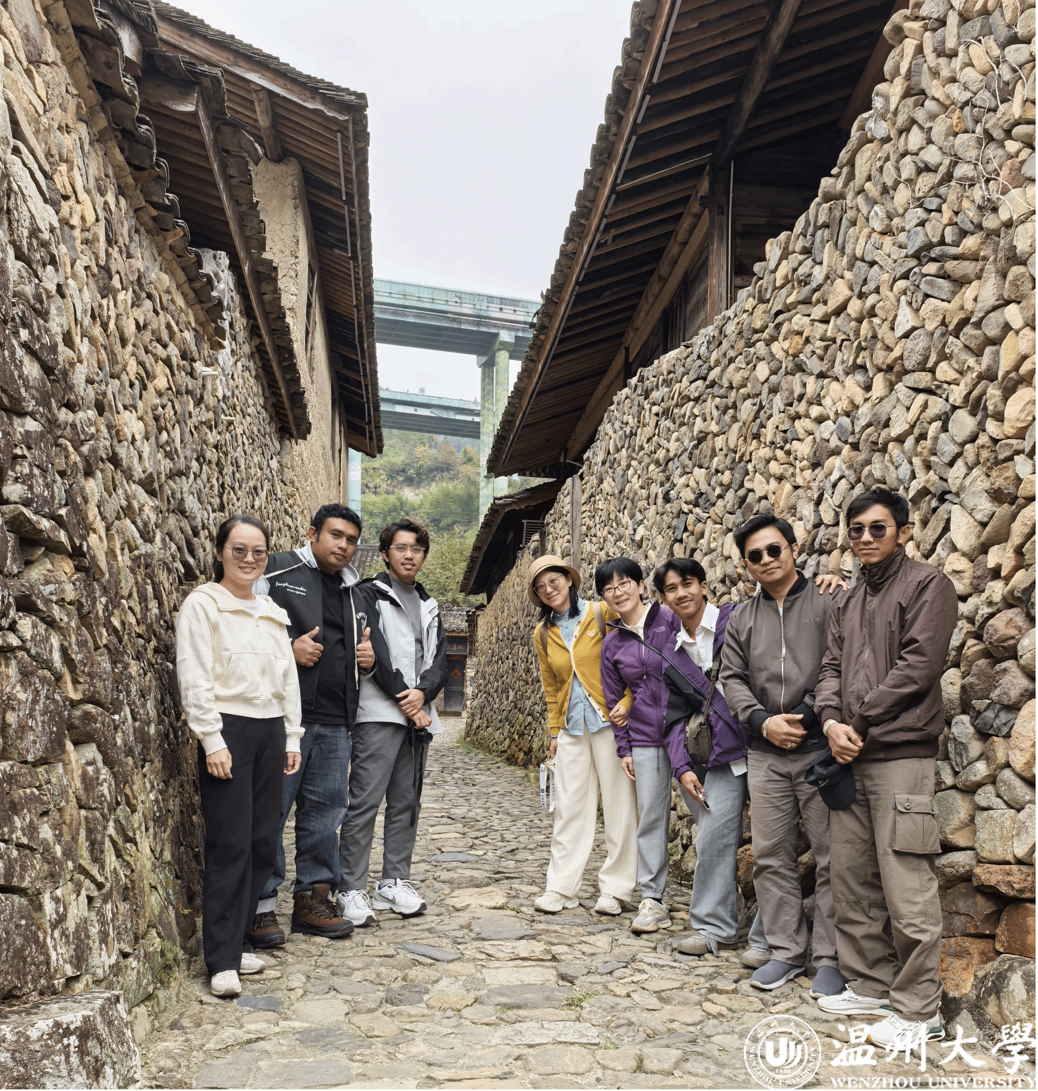本次活动行程丰富,师生们首先探访了拥有千年历史的库村古村落。行走在由鹅卵石精心垒砌的街巷与院墙之间,触摸着饱经风霜的石构建筑,留学生们沉浸于这座唐宋古镇独特的历史风貌与文化肌理之中。