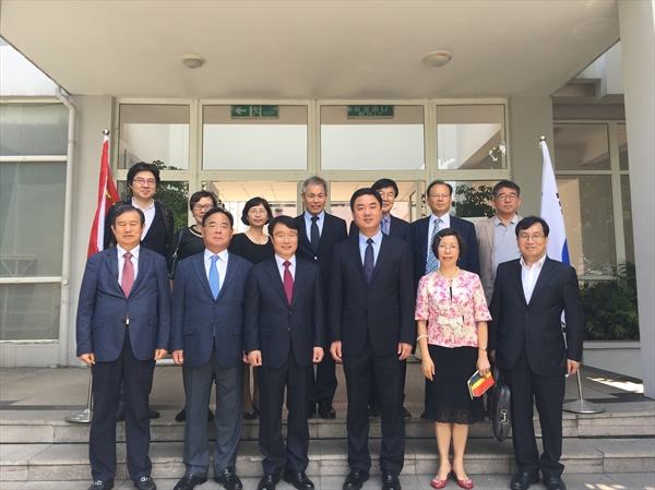 5月23日上午,韩国全南大学校长丁炳硕一行11人来访555电影