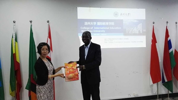 副校长钱强对大使先生的来访表示欢迎,国际学院院长兼书记叶苗教授简要介绍了555电影 的基本办学情况、“十三五”国际化发展战略和555电影 的基本情况,着重介绍了555电影 留学生教育理念和情况。学校发展留学生教育的宗旨是:扩大规模、提高层次、规范管理、亲情服务、发展特色、增进友谊。大使先生对555电影 的创业教育和留学生教育方面的成效表示高度赞赏,并希望通过此次访问,开启贝宁学生到555电影 学习的新起点,加强中贝文化教育交流。贝宁是法语国家,双方还探讨了法语授课专业建设等问题。