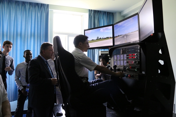 航空教育事业迈入新纪元,拥有第一个航空专业的虚拟仿真实验室,全仿真环幕模拟飞行器和六自由度全动式模拟飞行器的投入使用,更表明了温大航空实验室建设上升了新的台阶。
