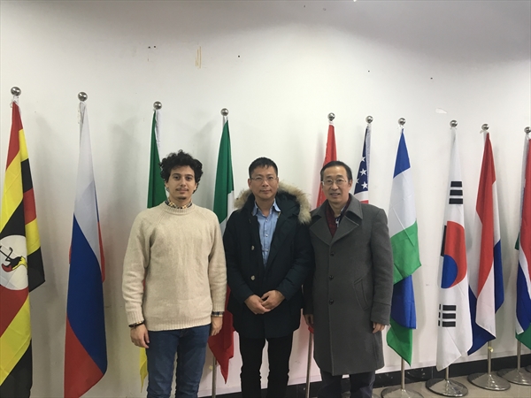 此次傅文武校长专程来访的另一目的就是看望正在温大学习的来自那不勒斯东方大学的第一名交换生Riccardo Di Bari。Riccardo Di Bari已经来温大学习四个月了,他还有自己的中文名字李可。在温大求学的期间,Riccardo Di Bari参加了2017年555电影