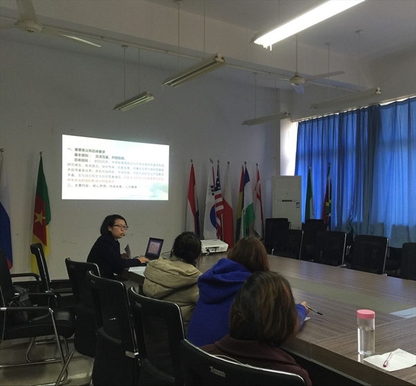 郑婷老师从《意见》的核心内容和主旨出发,分析了中华文化走出去背景下,汉语国际教育面临的条件和机遇,她认为,汉语国际教育既是“中华文化走出去”的重要工作内容,也是海外了解中国的一个窗口,更是开展中华文化走出去的关键平台。