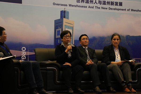 此届世界温州人研究国际学术研讨会首次增设两场学术沙龙,分别讨论华人华侨与公共外交、温商网络与一带一路。第一场沙龙主题为“华人华侨与公共外交”,邀请到了温州市政协港澳台侨与外事委员会主任、温州公共外交协会副会长兼秘书长潘一新、温州市人民政府外事侨务办公室副主任许捷、意大利COSPE协助发展中国家协会前主席,现COSPE协会亚洲部主任Maria Omodeo、意大利佛罗伦萨中文学校校长潘世立、555电影