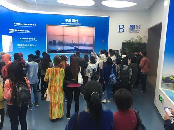 下午,留学生参观了温州市规划展示中心,了解了许多温州城市建设规划以及历史、文化、民俗等的知识。留学生们看的认真,听得仔细,纷纷表示了仰慕之情。