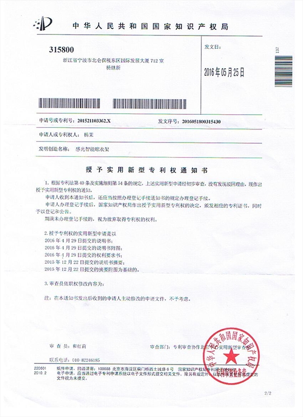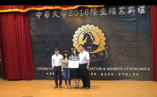 国际合作学院2013级电子信息专业(两岸合作项目)学生杨茉、陈若南和张姚瑶三位同学共同研发了“感光智能晾衣架”,获国家实用性新型技术专利,并在台湾中华大学举行的结业典礼上受表彰。