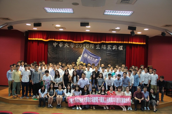 与台湾中华大学首届两岸合作项目13级电子信息专业同学赴台学习满一年,中华大学隆重举行结业典礼。出席典礼的有中华大学校领导、各学院两岸项目分管院长、项目任课教师、各合作院校随队老师以及全体陆生。