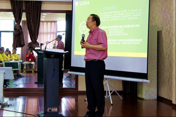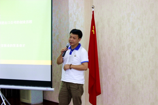 国际合作学院院长严晓鹏博士做了一场题为“大众创业,万众创新与华裔青年的发展”的创业教育专题讲座。此次讲座特别邀请了温州五洲进出口公司总经理项炳义先生、温州市轻工艺进出口有限公司董事经理王立丹先生作主题分享。