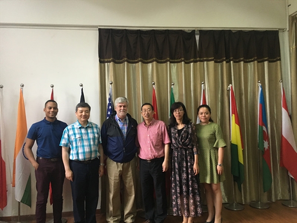 国际合作学院院长、温州市通用航空飞行学院(筹)院长严晓鹏、副院长包含丽热情接待了来访的美国桥水大学商学院院长Dr. Alexander及亚洲主管Dr.Yu一行,飞行学院相关人员参与了会见。