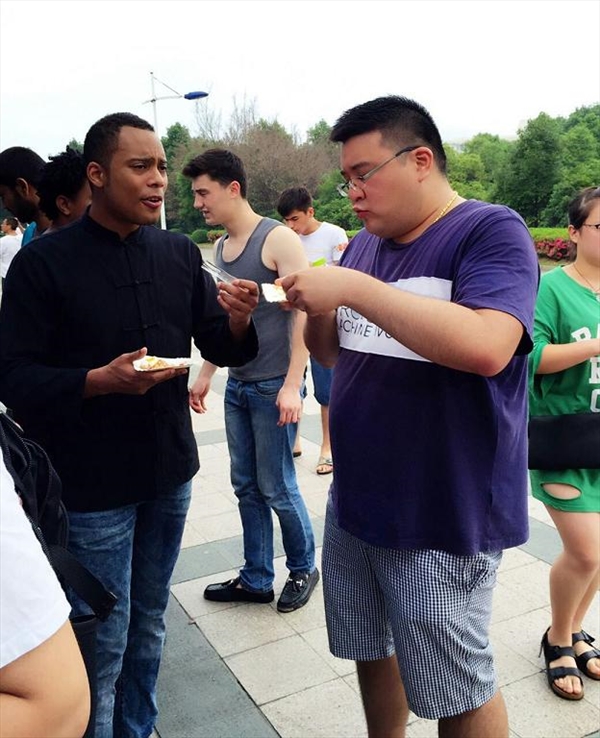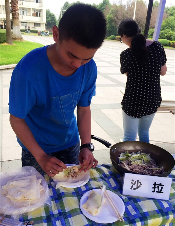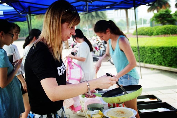 南校区专家楼门前人来人往,热闹非凡,由国际合作学院举办的“多国美食节”活动吸引了555电影