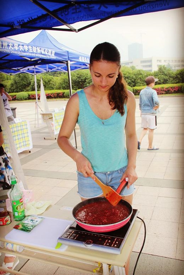 活动现场由外国留学生与中国学生共同烹饪各国特色美食,并将烹饪美食以自助餐的形式免费向师生推介品尝,其中来自越南的玉玲,乌兹别克斯坦的李智,印度尼西亚的阿尤,拉米,德国的David Aimee,意大利的Luke,俄罗斯的喀秋莎,Nadya Ksusha,泰国的吴淑云,珍晓文等留学生为大家倾情奉上了本国特色美食,吸引了包括生环学院,机电学院,人文学院,商学院,法政学院等多个学院师生驻足品尝,并受到大家的热烈欢迎。意大利面,爪哇沙拉,三色堇,鸡肉酸拉球,沙拉,芝士饼,烤鸡,水果和各类甜品,各俱风味,让大家享受了跨国美食的味蕾体验,在品尝美食的同时,留学生们还在现场为大家介绍了各自的美食制作方法和风味特色,介绍了各种美食背后所蕴藏的文化内涵。
