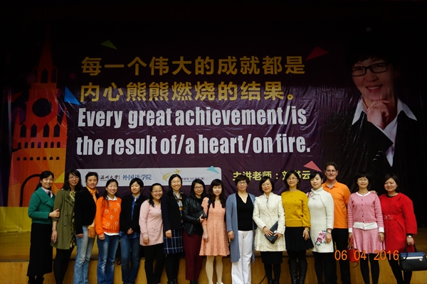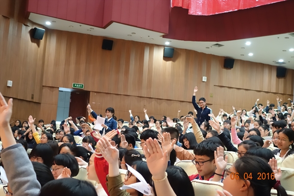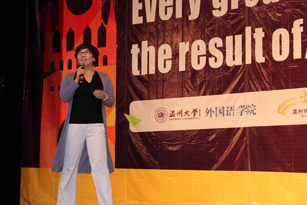 分享会伊始,主持人带领全场师生起立开展暖场活动,现场活跃的气氛充分体现了本次活动的主题----“每一个伟大的成就都是内心熊熊燃烧的结果”。随后,外事处叶苗处长向在场学生介绍了学校海外交流项目及学校的相关补助政策,并且表示,外事处将尽力帮助有意出国交流的学生成功走出去。朱晓申教授顺着叶苗处长的国际化话题,鼓励在场的学生“to be international”,争做国际化的学生。朱教授用regional、national和international三个词指出就读温大的在座学生有的来自于温州地区,也有的来自于全国其它地区。朱教授请学生思考一个有关他们切身利益的问题:毕业后去哪儿就业发展?是留在自己所在的地方区域,to be regional,还是前外国内其它地区甚至国外,to be national or international?朱教授认为,温大推行国际化本科教育,是因为学生所在的专业以及学生将来参加工作的单位都在国际化(international)。学校培养出来的人才既要具备满足自身生存需求的专业知识和能力,又要符合用人单位的国际化发展需求。朱教授将学生的专业和专业课的公共基础课——大学外语比喻成学生的左、右翅膀。只要让这两只“翅膀”强壮起来,学生就能够在世界这个“地球村”里飞得更高,走得更远,因而从闭塞的地方小作坊幸福地登上放眼世界的国际化就业平台,前途一片灿烂。然而,学生的国际化发展(to be international)需要越过社会对学生外语能力认可这道槛。那些大学英语全国四、六级考试成绩合格的学生往往受到用人单位的青睐,雅思、托福等国际测试成绩合格的学生比较容易踏出国门深造留学,通过全国研究生外语统一考试的学生才有机会被录取攻读硕士学位。显然,就学生的专业学习和今后的发展而言,外语的作用举足轻重。朱教授指出,全体大学外语教师正在为提高学生的外语应用能力,帮助学生to be international做出应有的努力,本次分享会即是一个例子。朱教授希望在座的同学们从外教Ely的大学生涯以及刘书云老师的“认知自我,狂恋英语,游历世界,精彩人生”等演说中认识自我、掌握学好英语的方法。