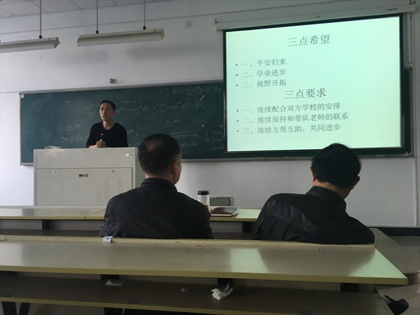 最后,朱建平书记进一步强调了赴台的纪律和安全问题,提醒大家要服从中华大学的各项安排,积极配合带队指导老师的管理,遵守各项纪律和规章制度,团结互助,认真学习,珍惜并利用赴台学习交流的机会,努力争取在学业上更上一层楼。同时,朱书记祝福各位同学:在新的学期,以新的面貌,获取新的进步,圆满完成赴台交流的各项学习任务,平安返航。