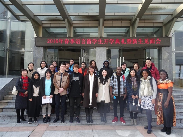 2016年春季语言留学生开学典礼暨新生见面会在南校区岩松堂展示厅举行,国际合作学院副院长包含丽、汉语推广教研室负责人、学院相关科室负责人及教师代表出席了典礼,郑婷老师主持典礼。