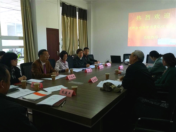 国际合作学院书记朱建平、副院长陈军、国际化课程教研室主任王洪斌、办公室副主任廖一帆、教学科科长黄呼尔励、学生科副科长谢坚等与认证专家组就认证日程、项目目标、认证流程、认证注意事项等进行了交流和讨论。