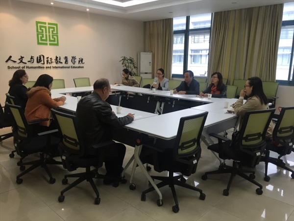 常务副院长徐丽华教授、汉硕专业负责人孙春颖博士、商务汉语专业负责人陆书伟博士及教师代表宣炳善博士一同接待了调研团队,开展了座谈交流。徐丽华教授简要介绍了该院在教学科研、中外合作办学以及孔子学院方面工作举措和特色建设,两位专业负责人回顾了两大专业建设历程,并详尽介绍了汉语国际教育专硕、商务汉语本科的建设情况,重点阐述了师资发展与特色发展是专业建设取得成果的两大法宝。