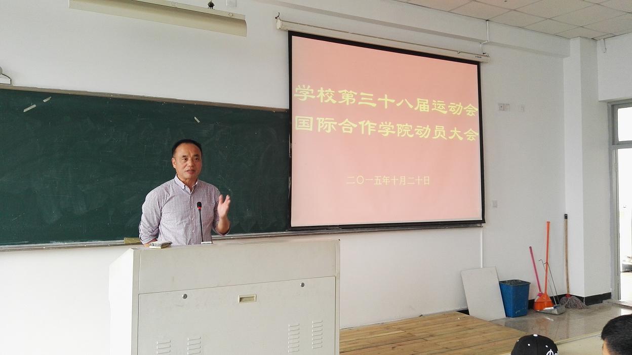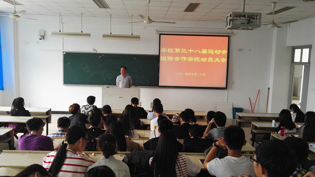 第三十八届运动会的到来,10月20日中午12点40分,国际合作学院校运会赛前动员大会在北校区3号楼401教室举行,参赛运动员、学生会后勤工作人员等60多人参加了会议,学院党总支书记朱建平出席了动员大会,会议由学生科谢坚老师主持。