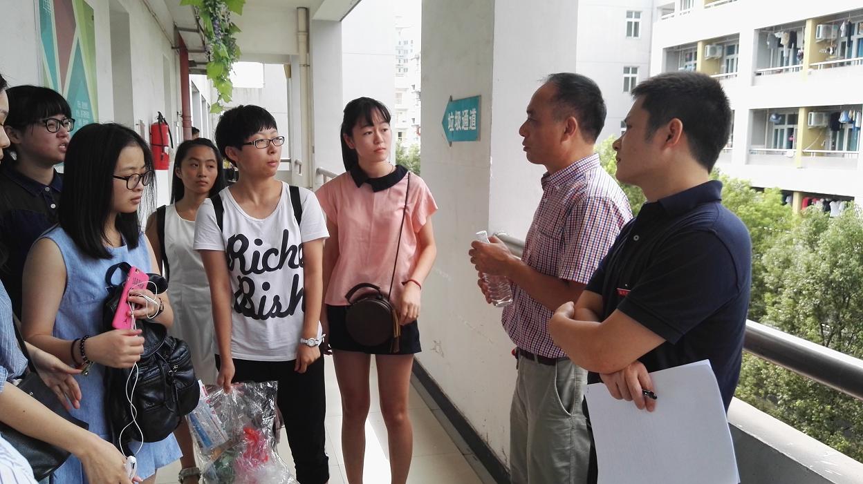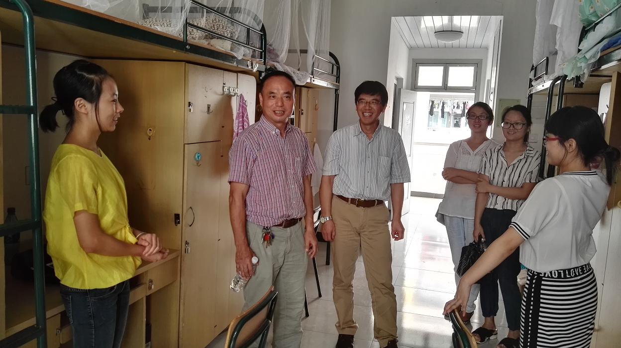 朱建平书记亲切地与新生交谈,详细询问新生的班级信息、了解新生的生源出处,关切新生在新环境的各项需求,并鼓励大家要积极转变角色定位,合理调整自己以尽快适应大学的生活环境和学习要求。与此同时,朱书记仔细查看了宿舍的各项设备,着重强调了日常生活中的安全防范工作的重要性,特别提醒大家要提高警觉意识和自我保护意识。最后,朱书记还在为人处世、学习、生活等各方面与新生作了经验交流,对新生四年的学习生活提出了希望,并预祝大家在国际合作学院的大家庭收获更多成长的力量。