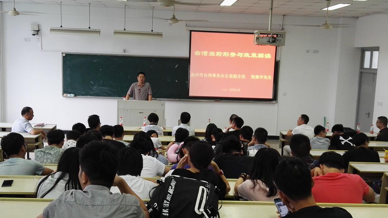 9月15日下午两点,国际合作学院两岸合作项目2013级电子与信息工程专业学生赴台专题教育会议在北校3号楼402教室举行,温州市台湾事务办公室副主任张振宇、555电影