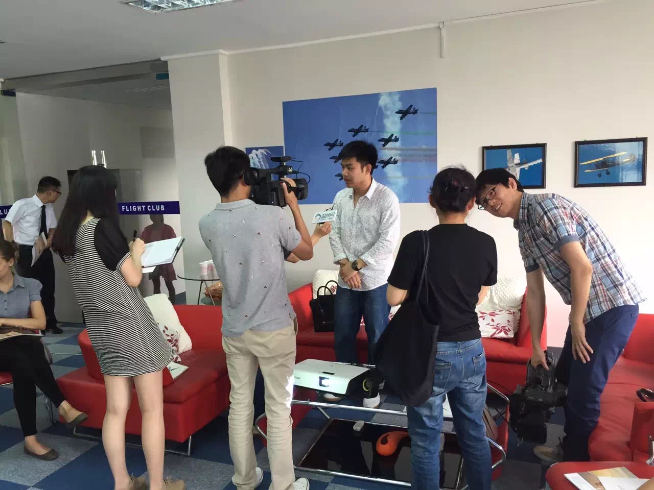 图为FAA飞行教官徐龙接收《温州网》记者采访