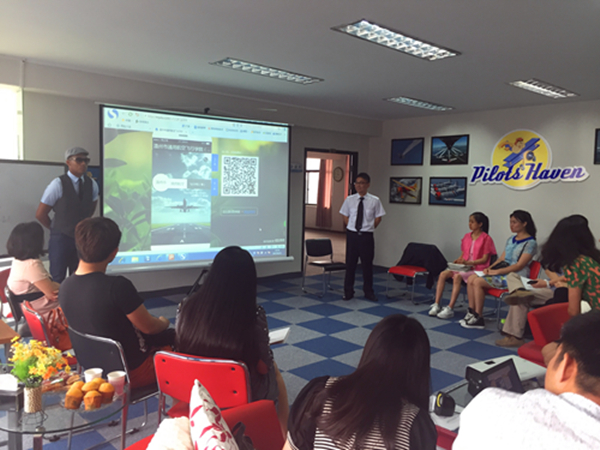 图为FAA地面教官苏中元介绍赴美学习课程情况