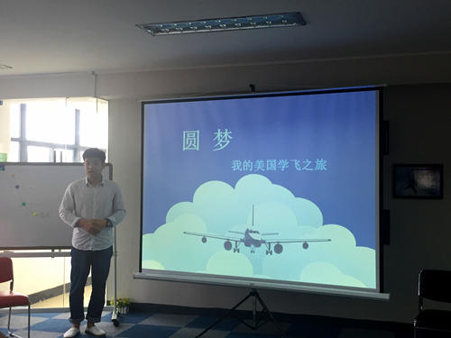 图为FAA飞行教官徐龙分享其美国学飞故事