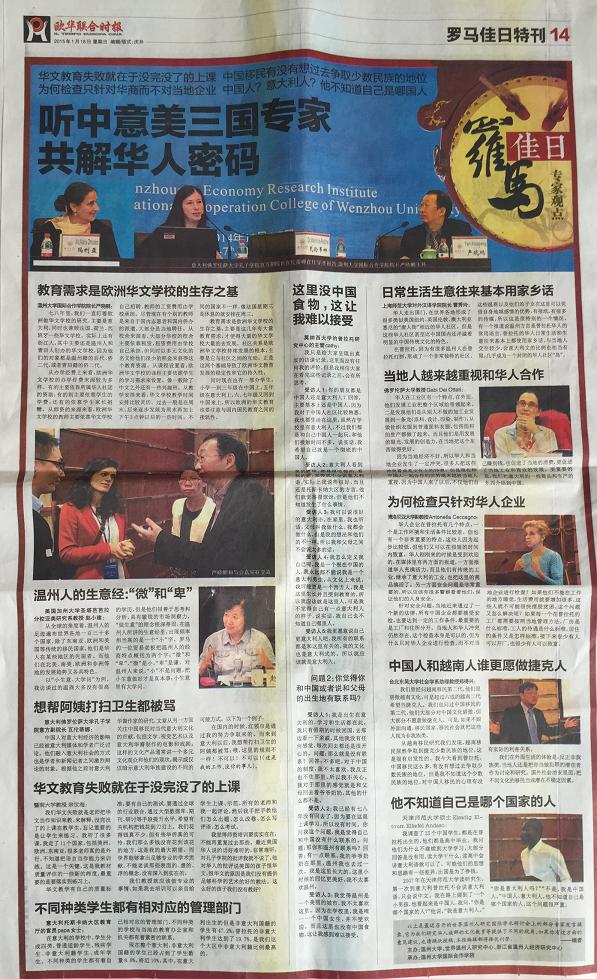 在2015年1月18日出版的意大利第一华文平面媒体《欧华联合时报》上,该报用整版报道了于2014年11月6-7日由温州市世界温州人研究中心、浙江省温州人经济研究中心、555电影